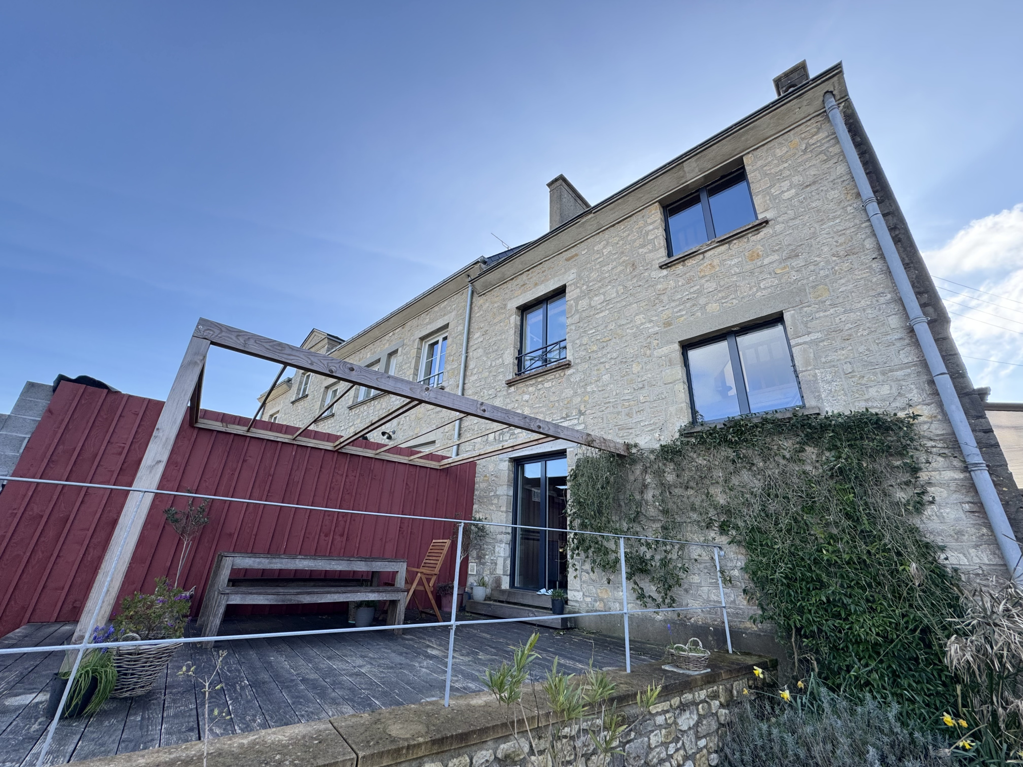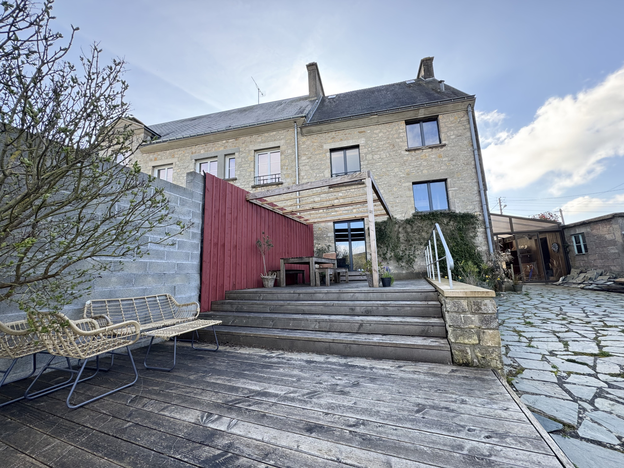 - Jolie terrasse en pierres sur l'avant et une autre très belle en bois sur l'arrière.