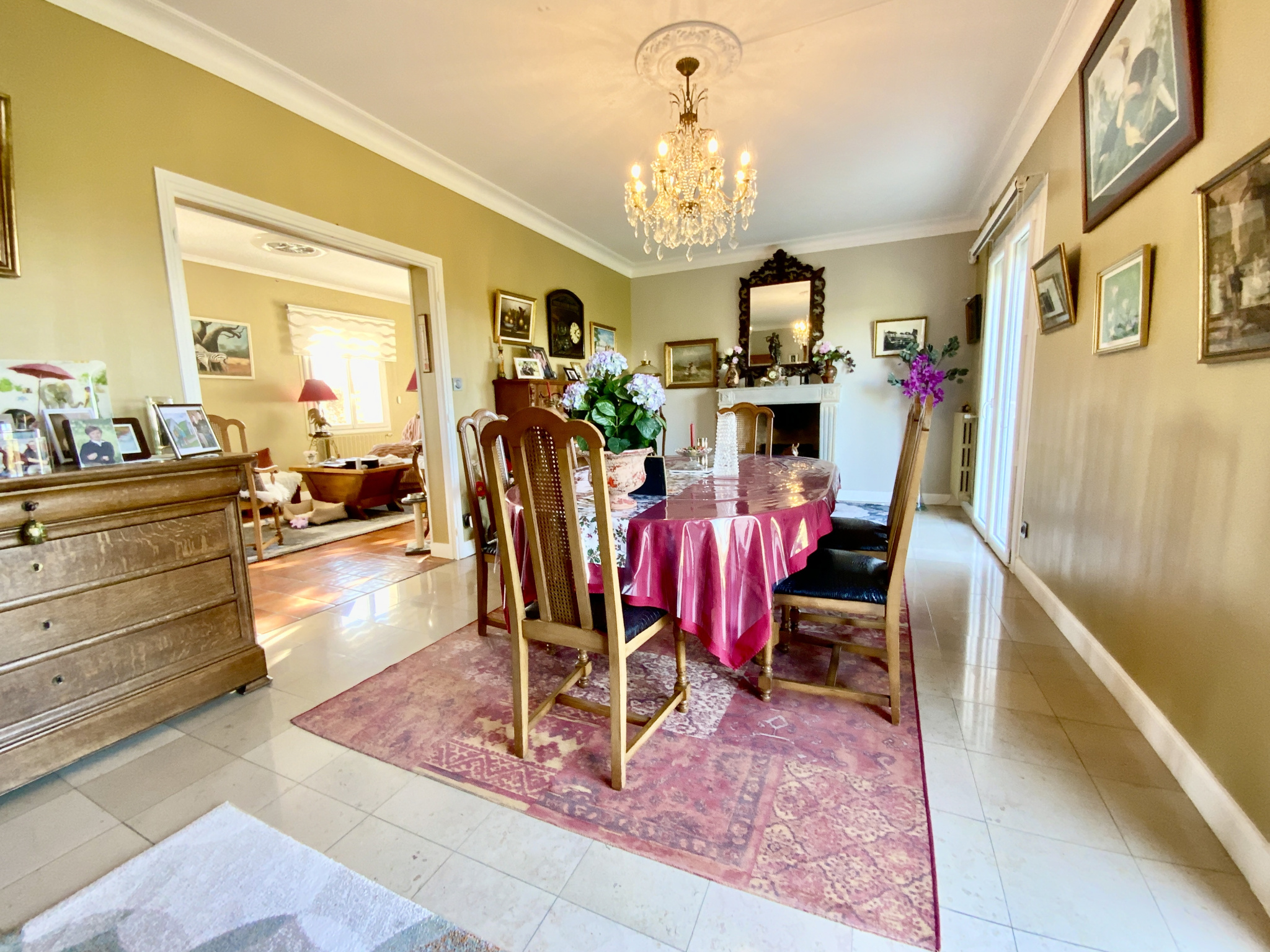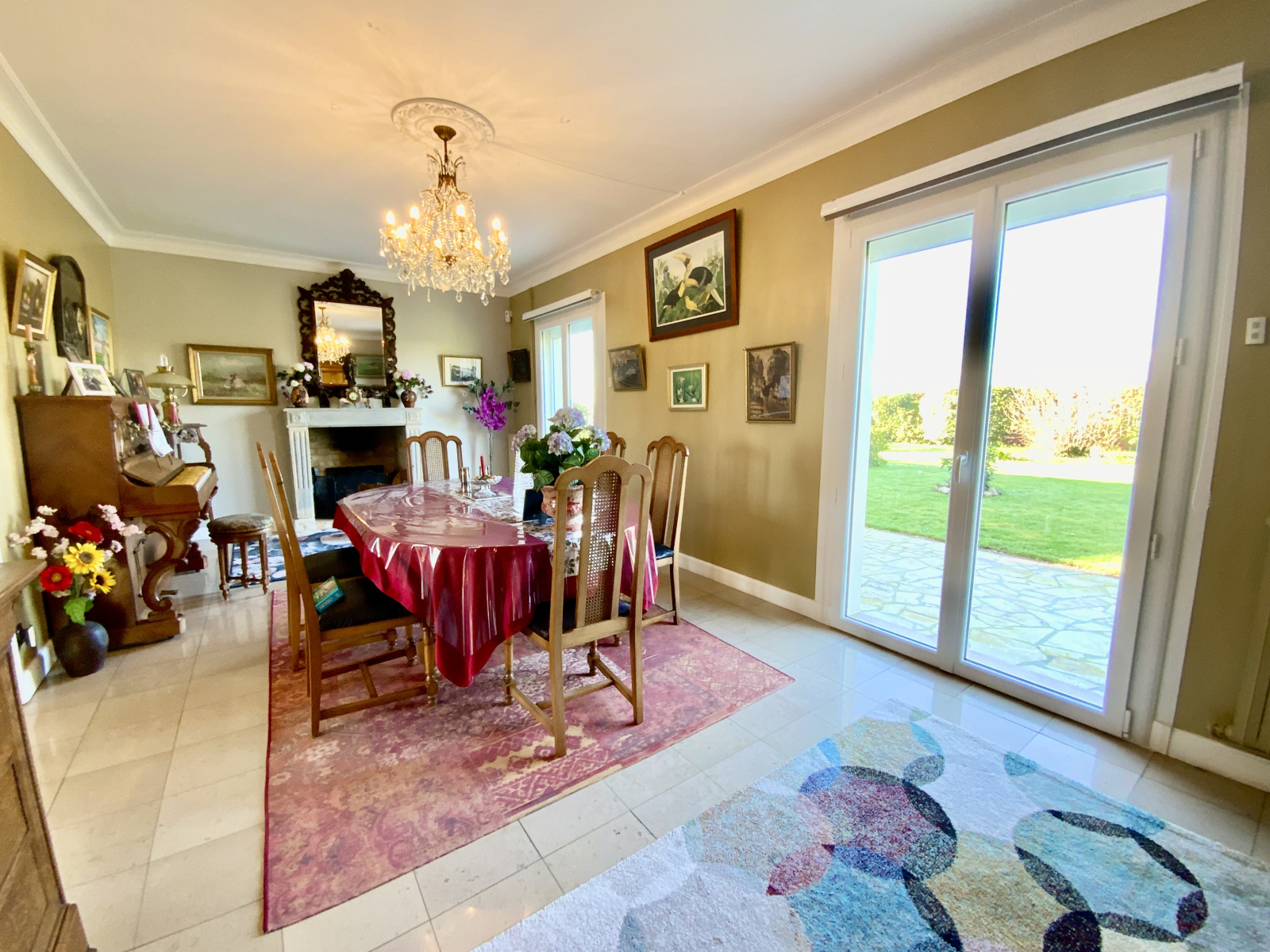 - Une salle à manger d'environ 23,5m2 avec sa jolie cheminée et son accès terrasse.