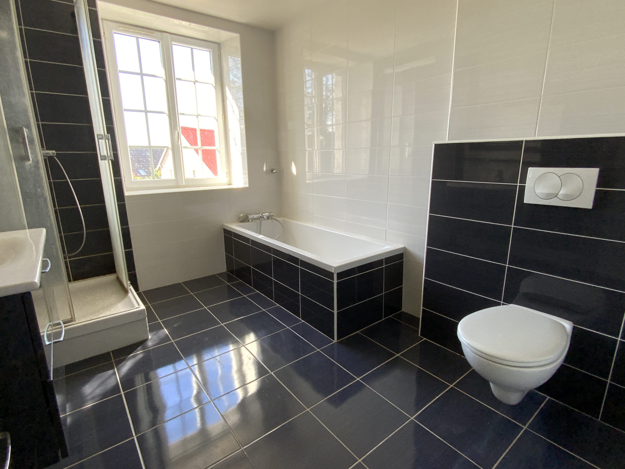 - Une salle de bains avec douche + baignoire + WC d'environ 8m2.
