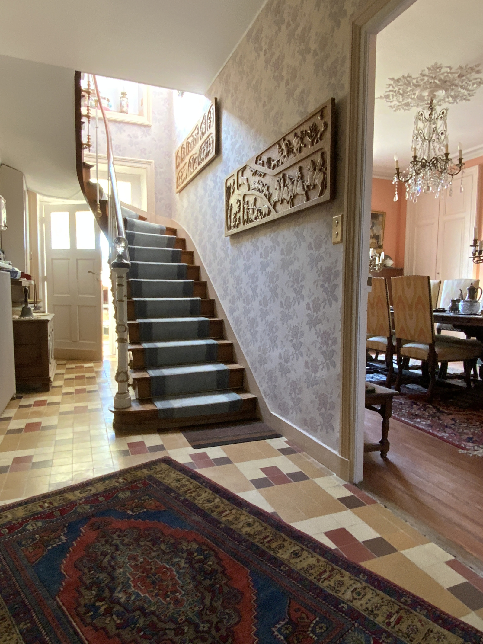 - Une seconde et vaste entrée, avec son superbe escalier, desservat la partie OUEST de la maison.