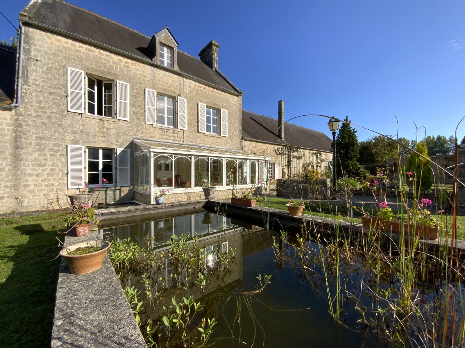- Un superbe jardin arboré avec bassin, coin potager etc ... sur l'arrière.