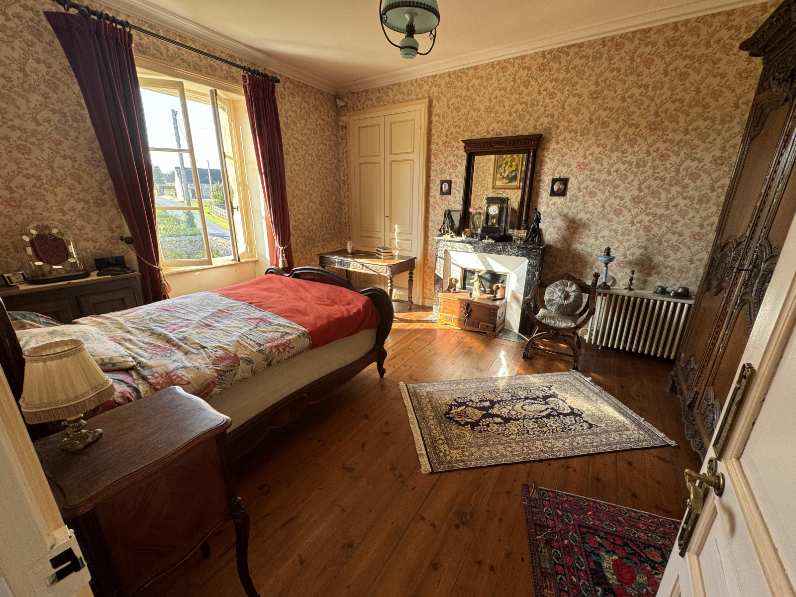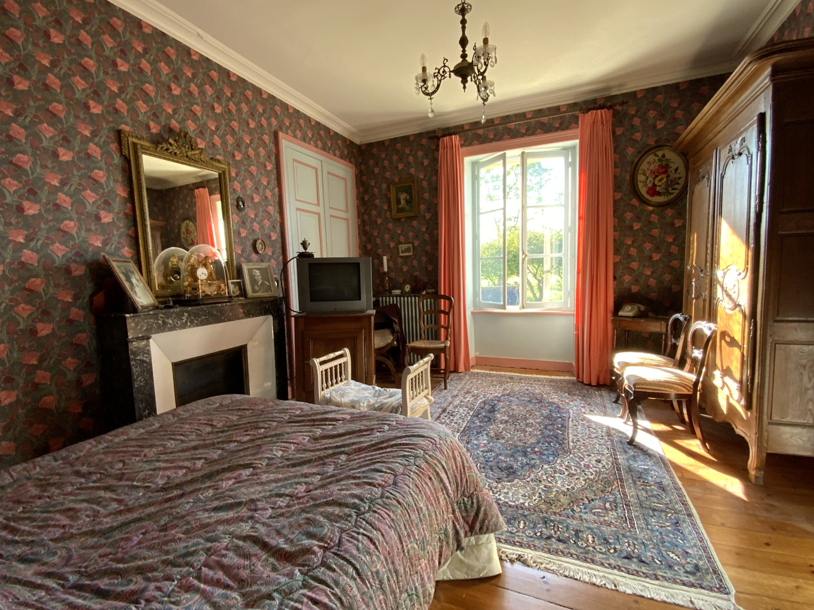 - Une première chambre avec cheminée et parquets, d'environ 19m2 avec coin dressing d'environ 8m2 sur l'arrière.