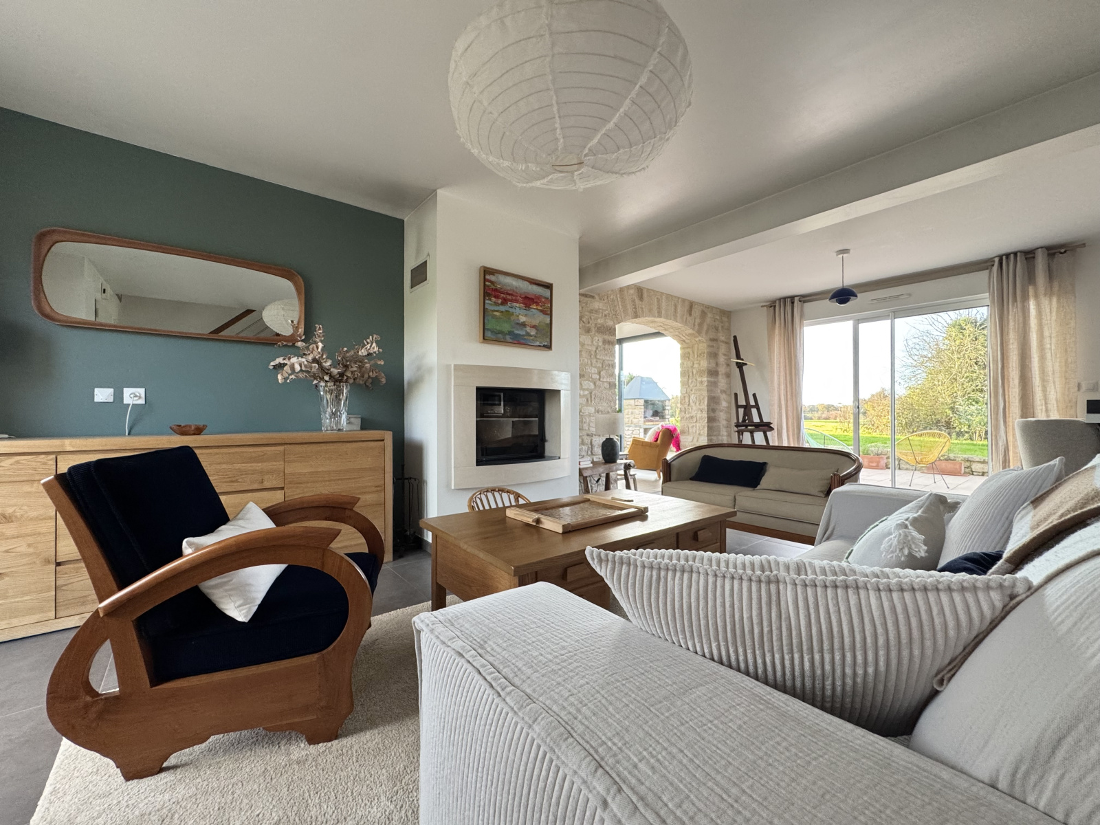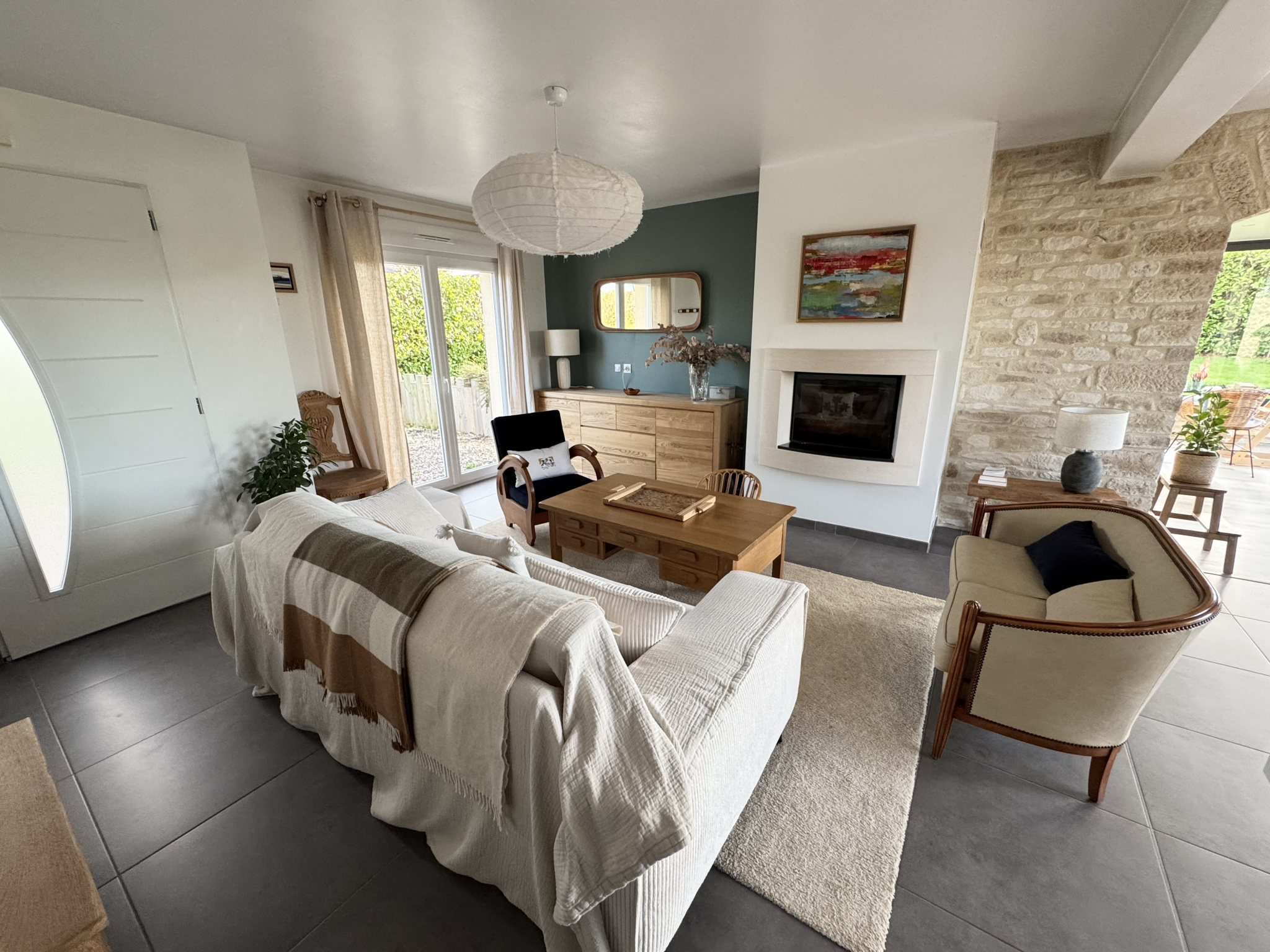 - Entrée sur le séjour/salon d'environ 30m2 avec sa jolie cheminée.