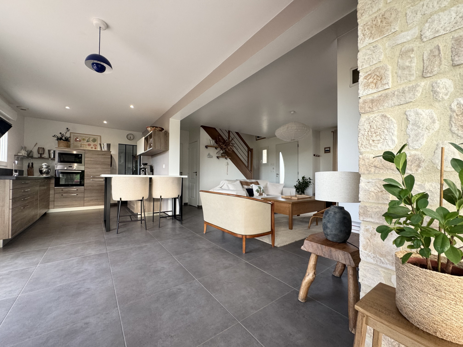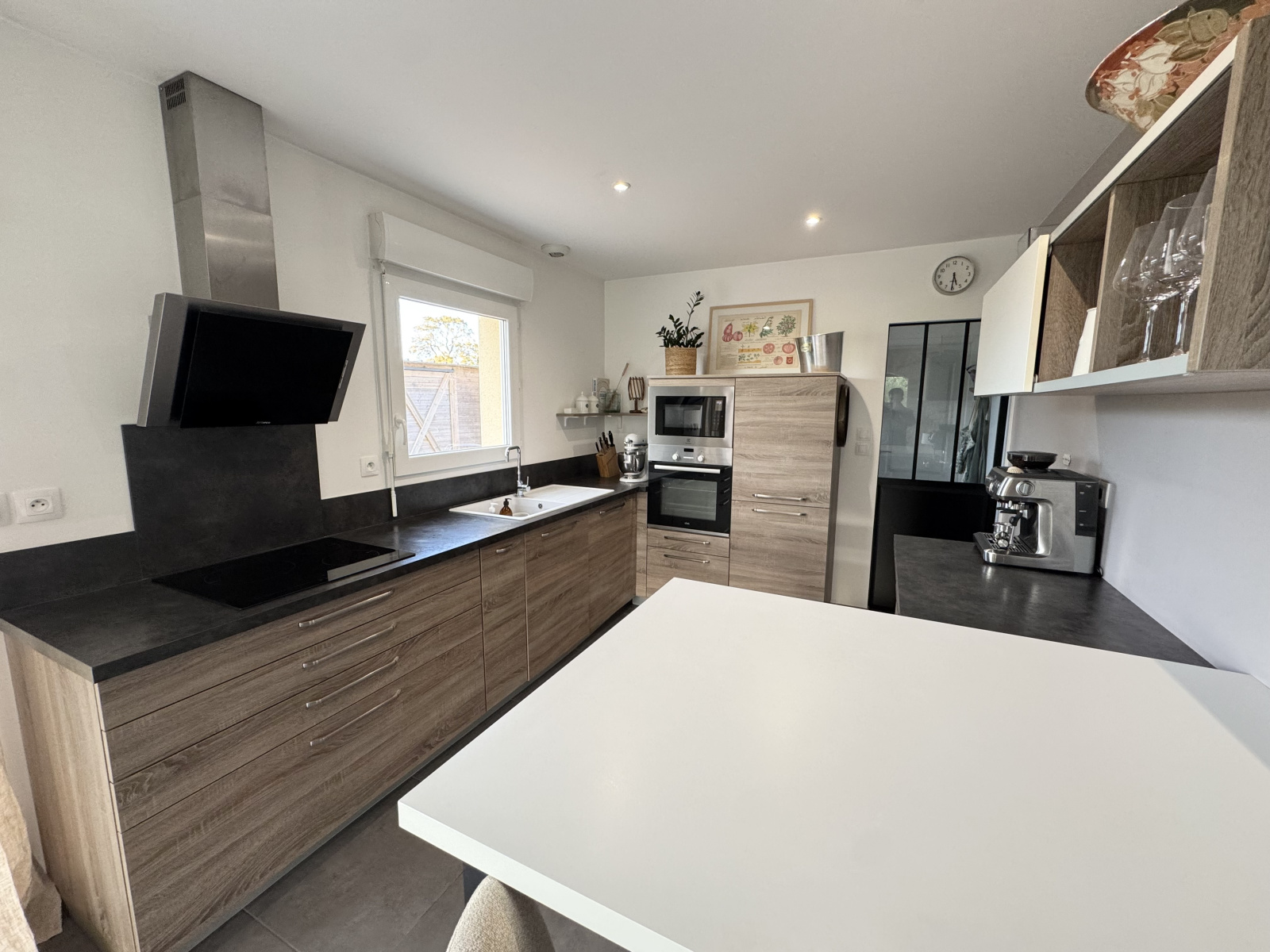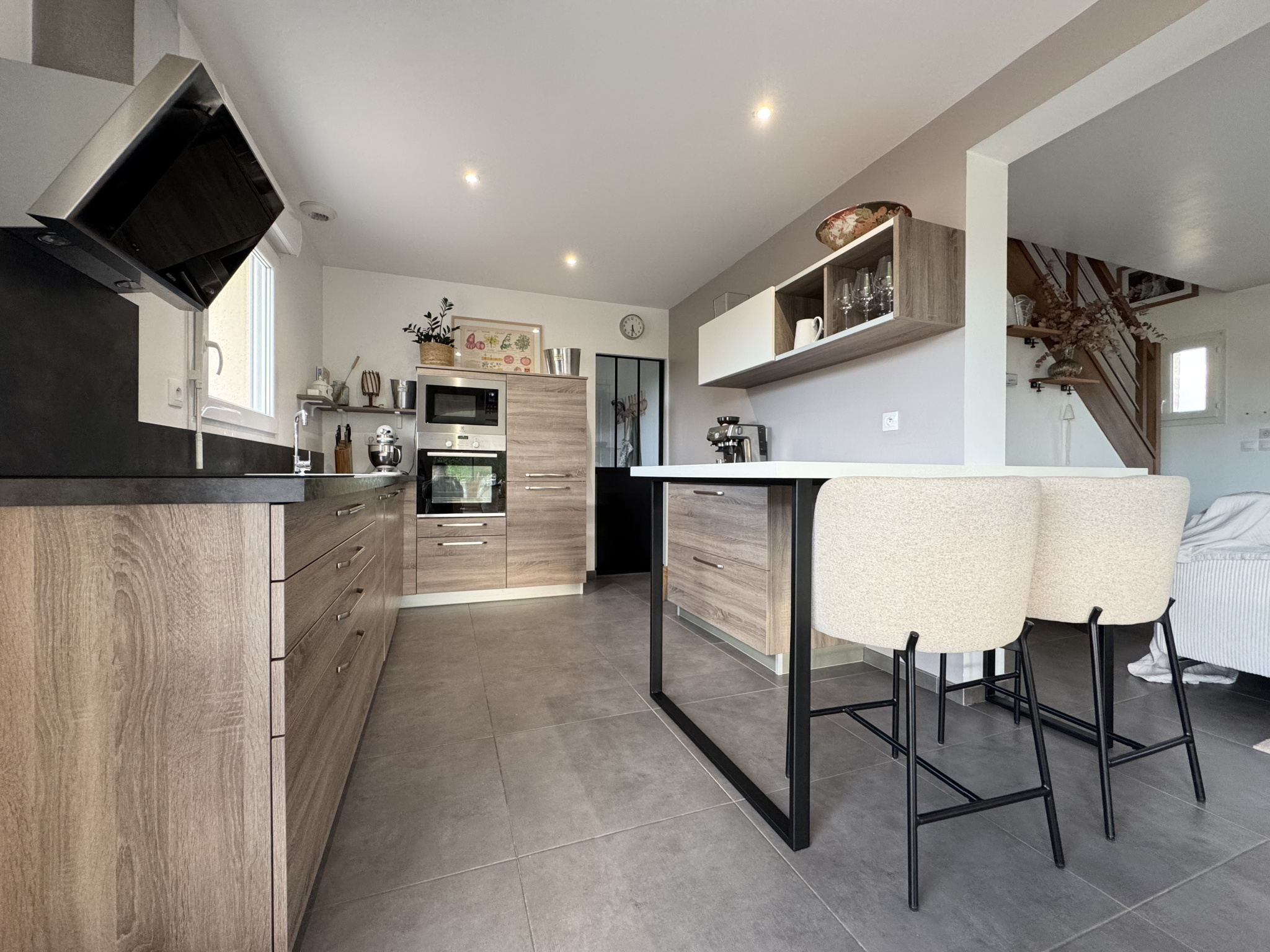 - Une cuisine ouverte sur le séjour, d'environ 13m2, entièrement aménagée et équipée.