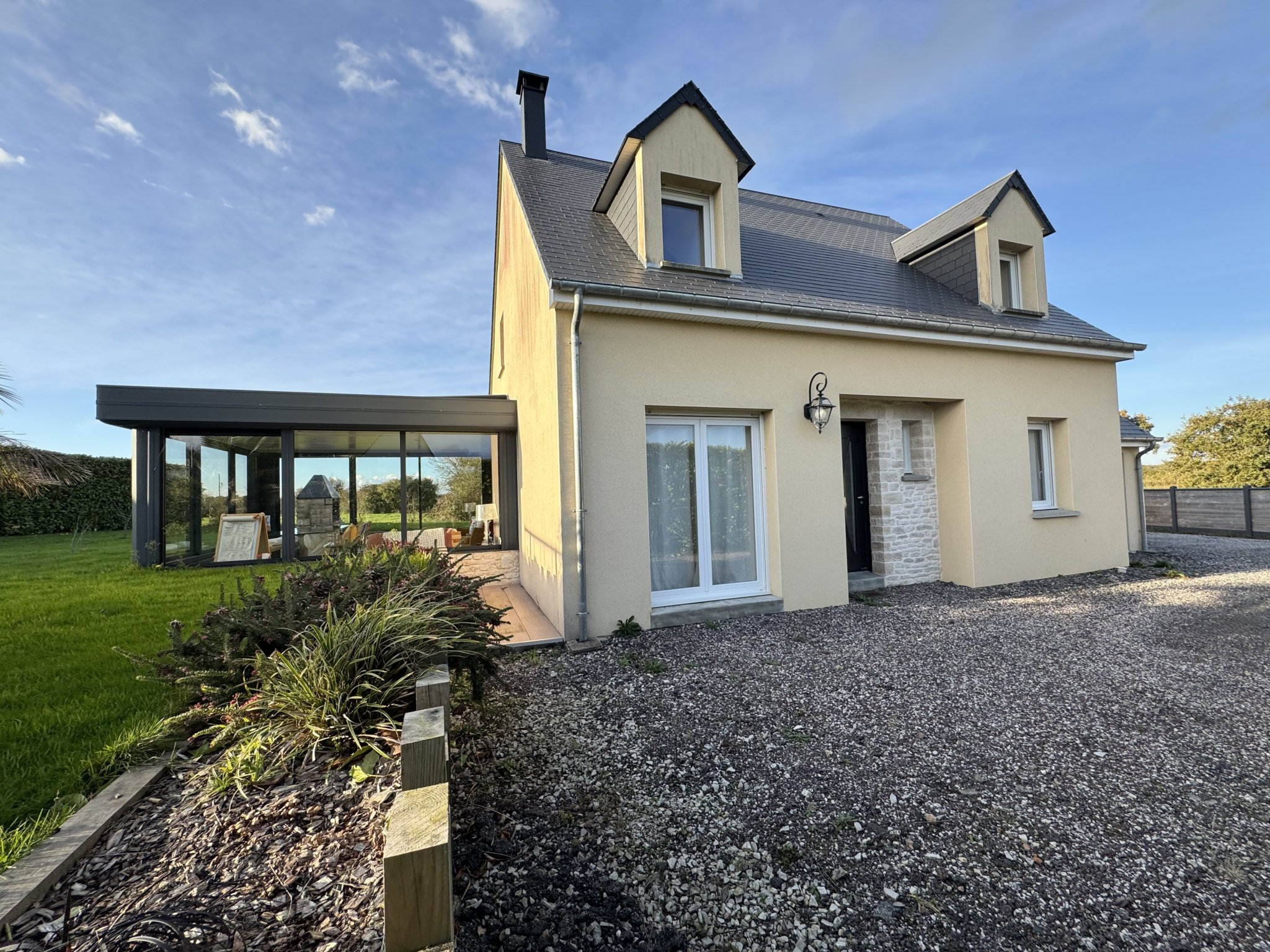 - Grande cour gravillonnée sur l'avant et sur le côté, parfaite pour du stationnement.