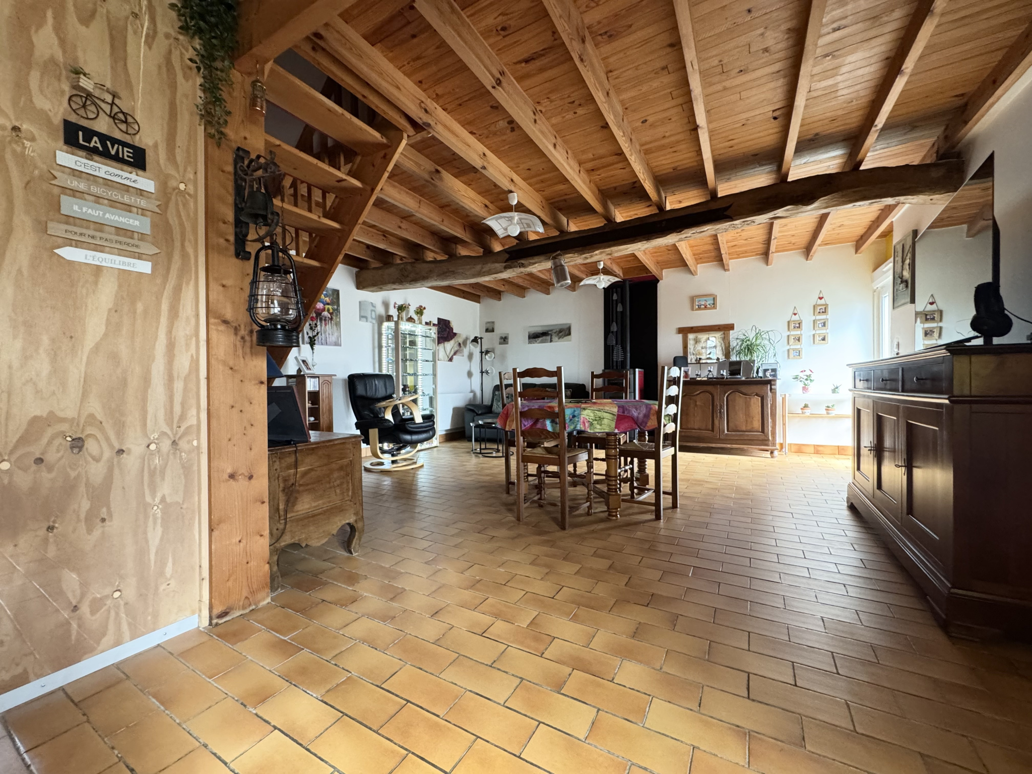 - Un grand séjour/salon d'environ 30m2 avec poêle à granulés.