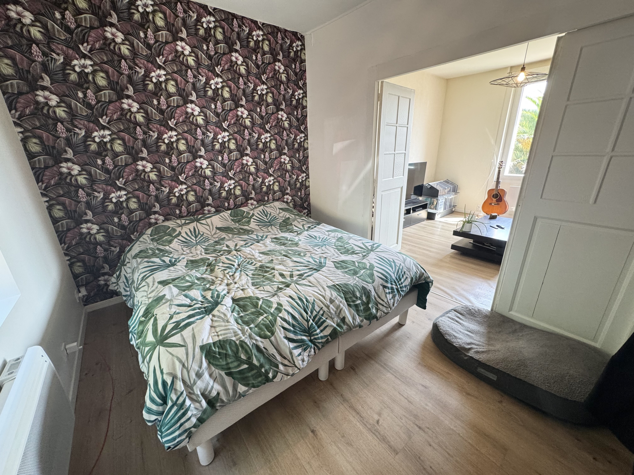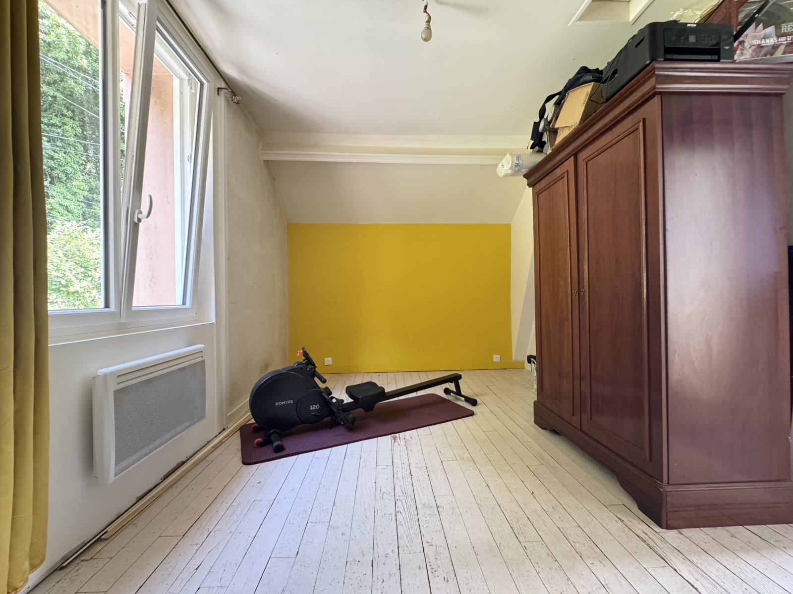 - Une pièce de la même surface, aujourd'hui à usage de chambre et permettant éventuellement d'agrandir la pièce de vie.