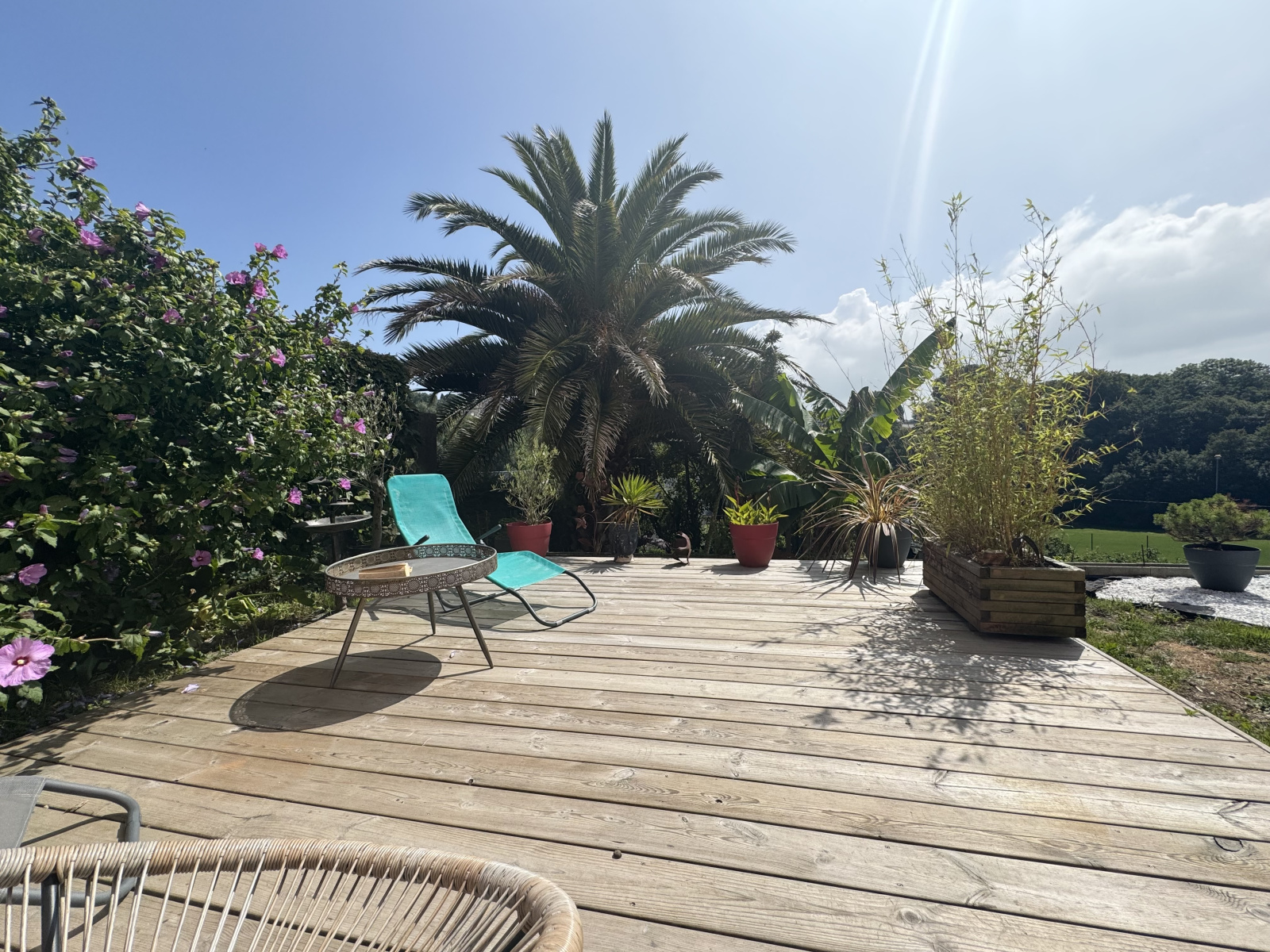 - Une terrasse surplombant le jardin et exposée plein SUD.