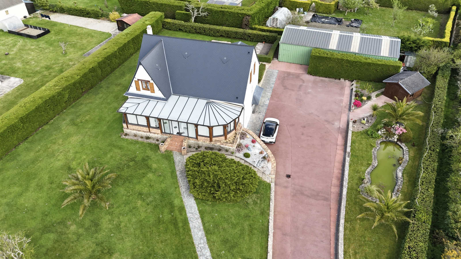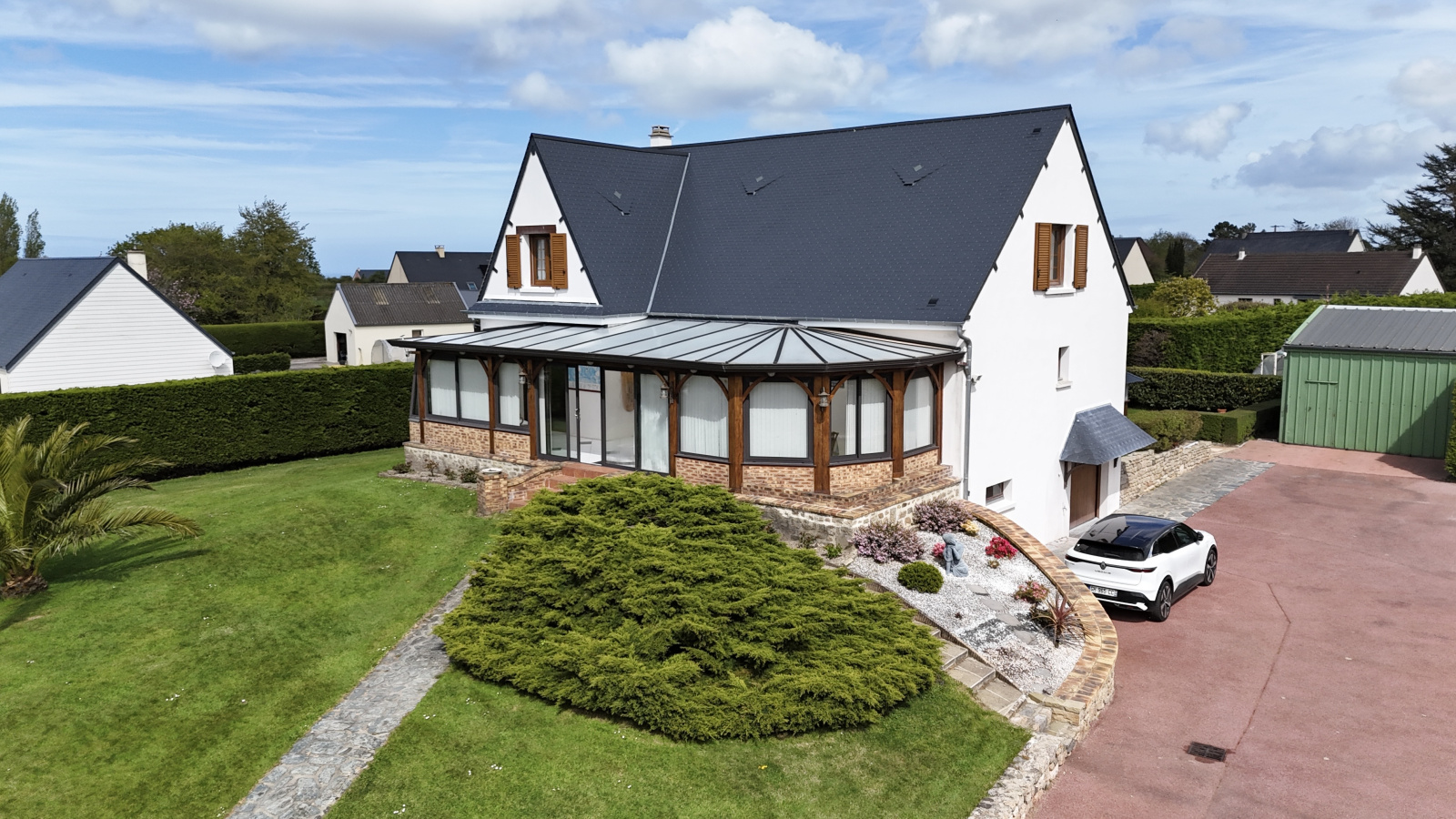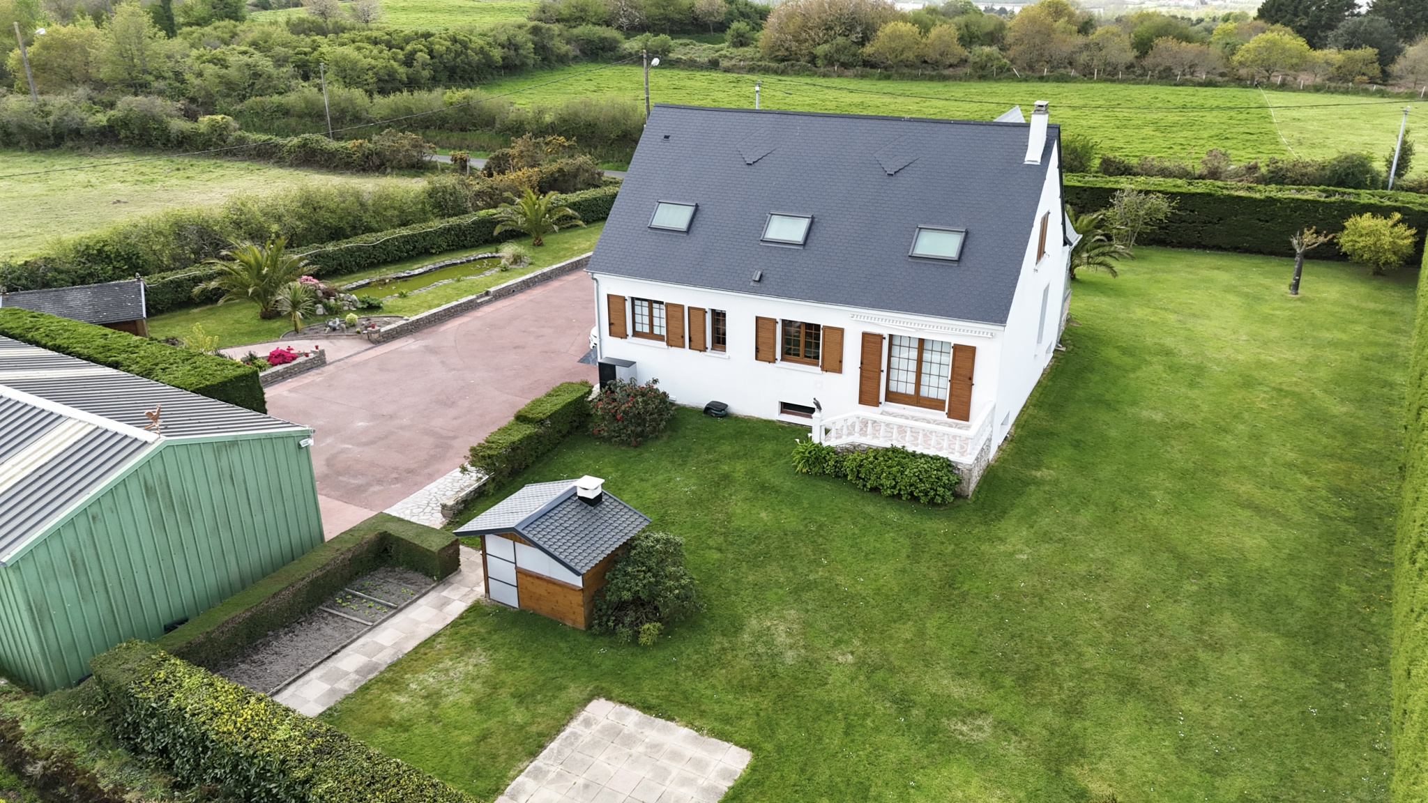 - Un beau jardin entièrement clos de haies, parfaîtement aménagé et arboré entoure la maison.