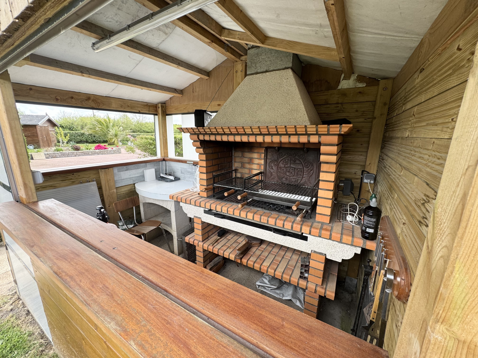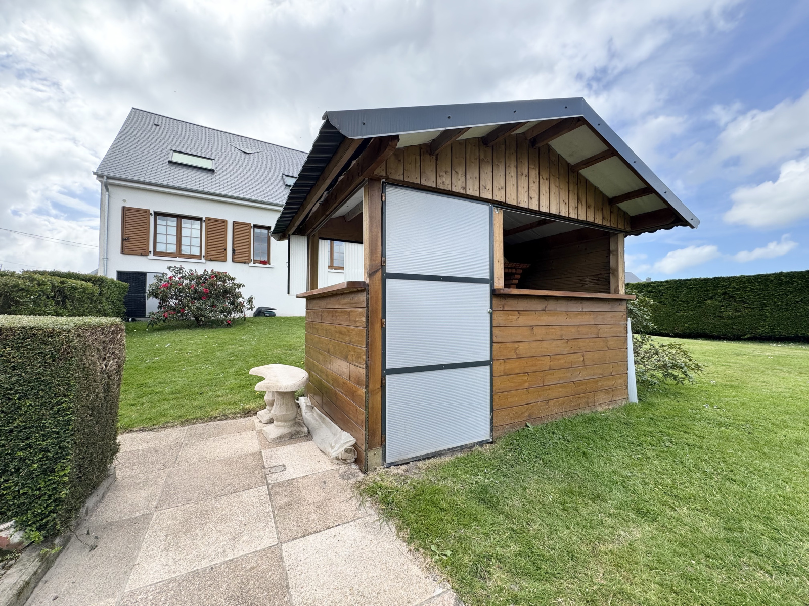 - Un petit chalet abrîte un barbecue et un autre permet du stockage.