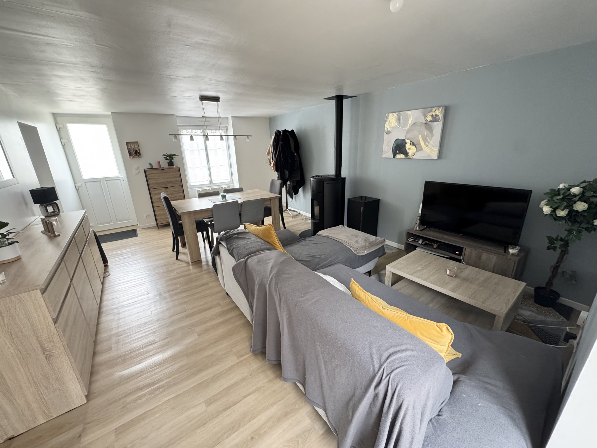 - Une entrée sur le séjour/salon d'environ 24m2 avec son poêle à granulés.